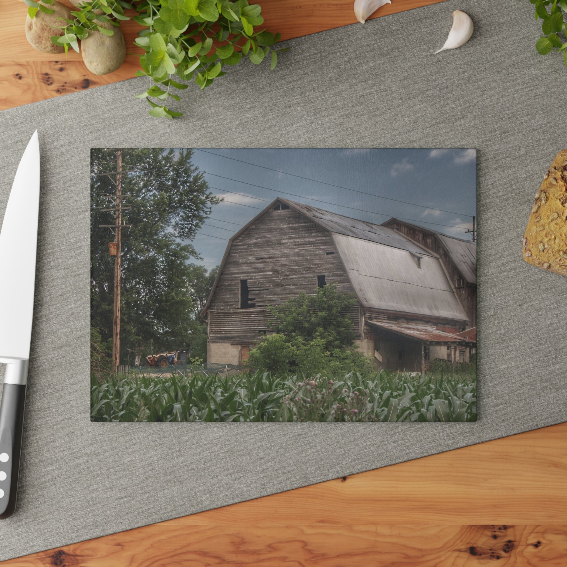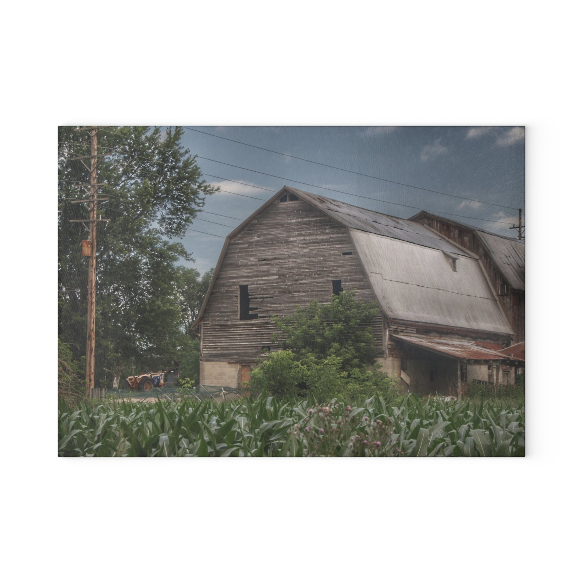 U R There Photography Murphy Lake Road Grey II Rustic Farmhouse Tempered-Glass Cutting Board
