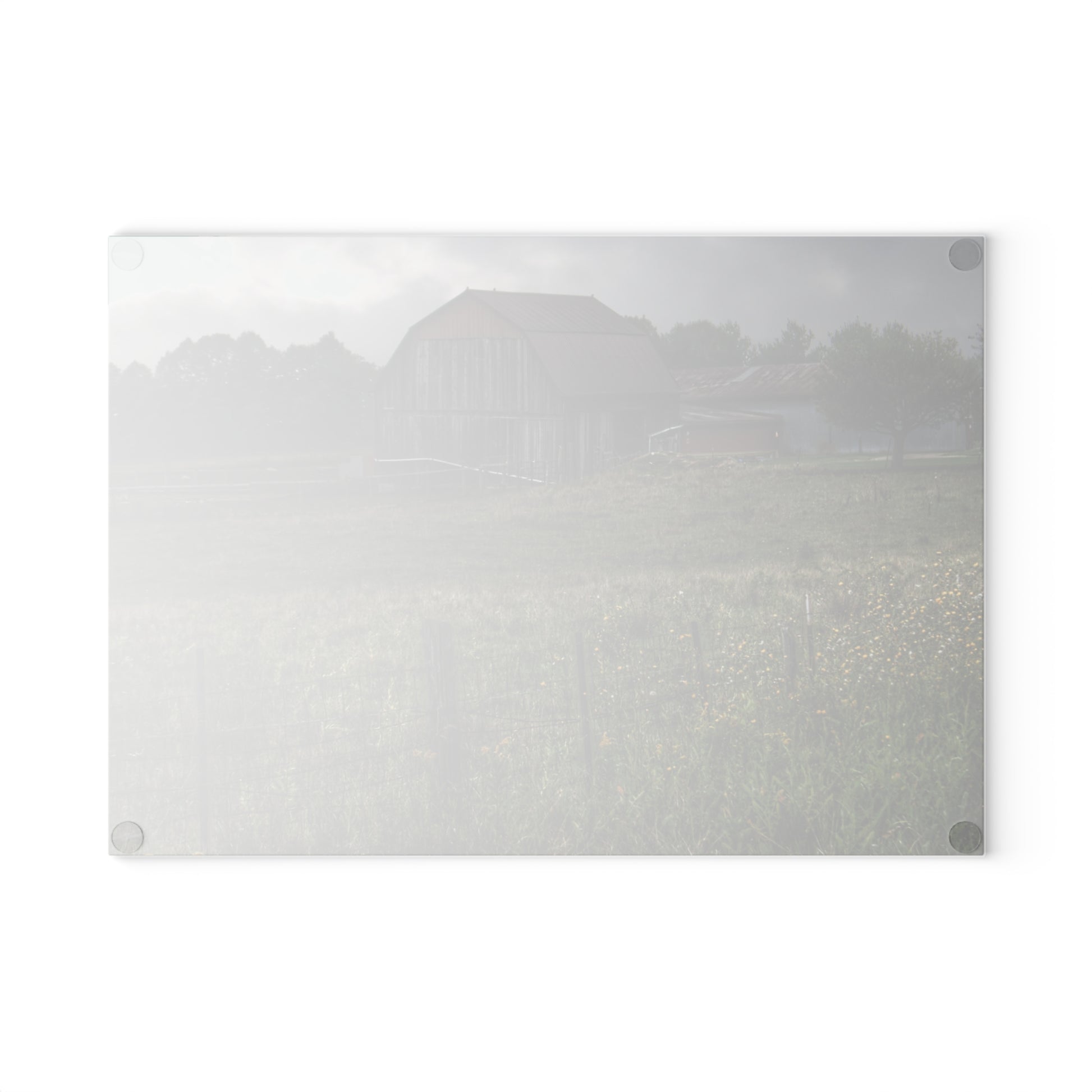 U R There Photography Newark Road Tilted Grey I Rustic Farmhouse Tempered-Glass Cutting Board