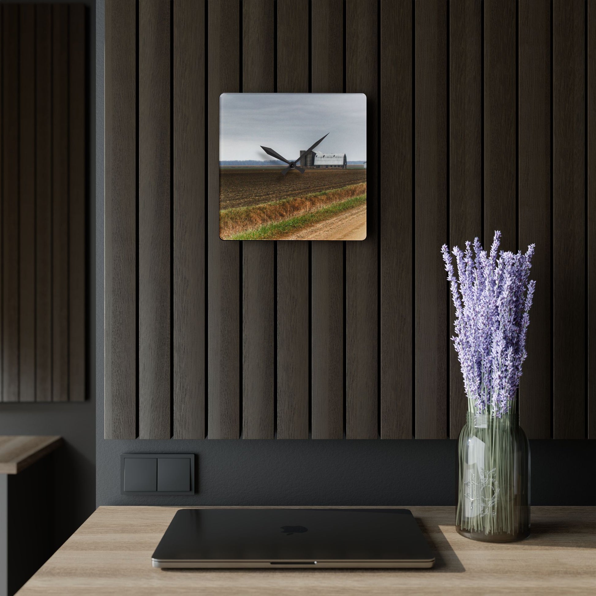 U R There Photography North Gates Road Old Grey I Rustic Farmhouse Acrylic Analog Wall Clock