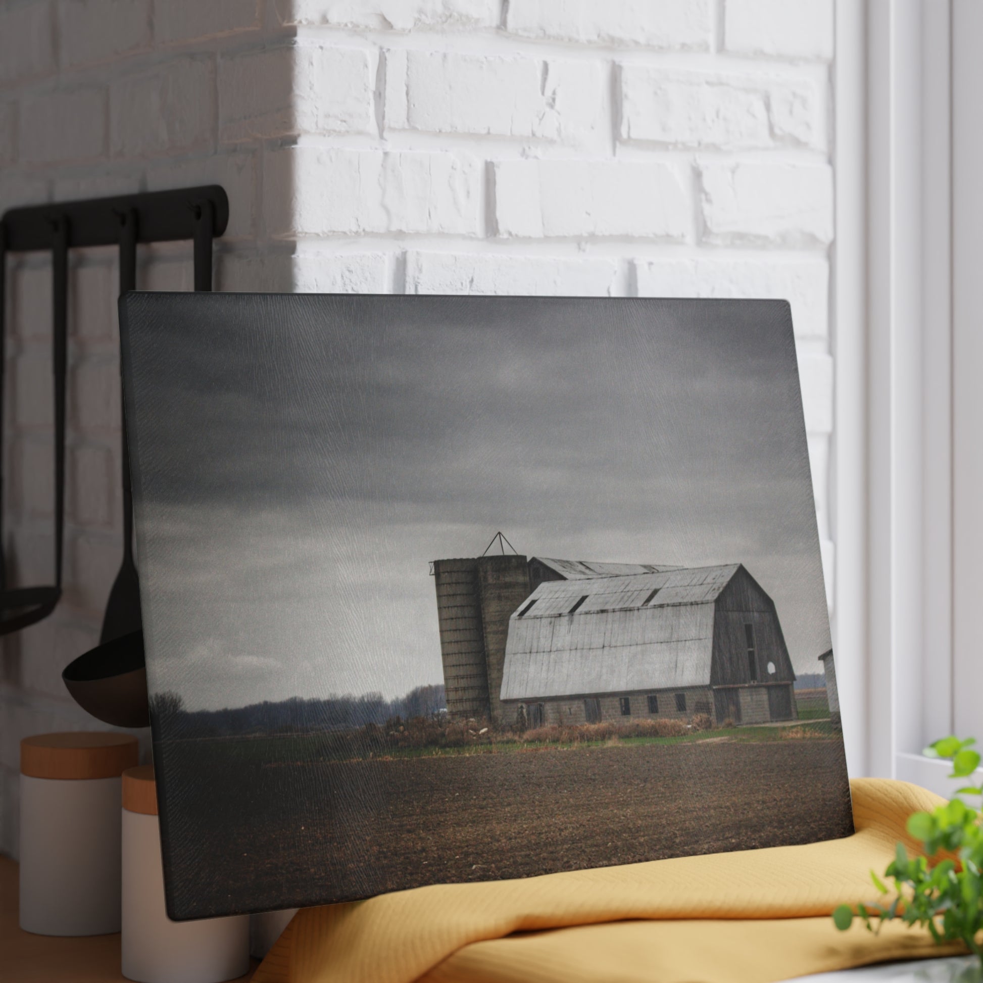 U R There Photography North Gates Road Old Grey II Rustic Farmhouse Tempered-Glass Cutting Board