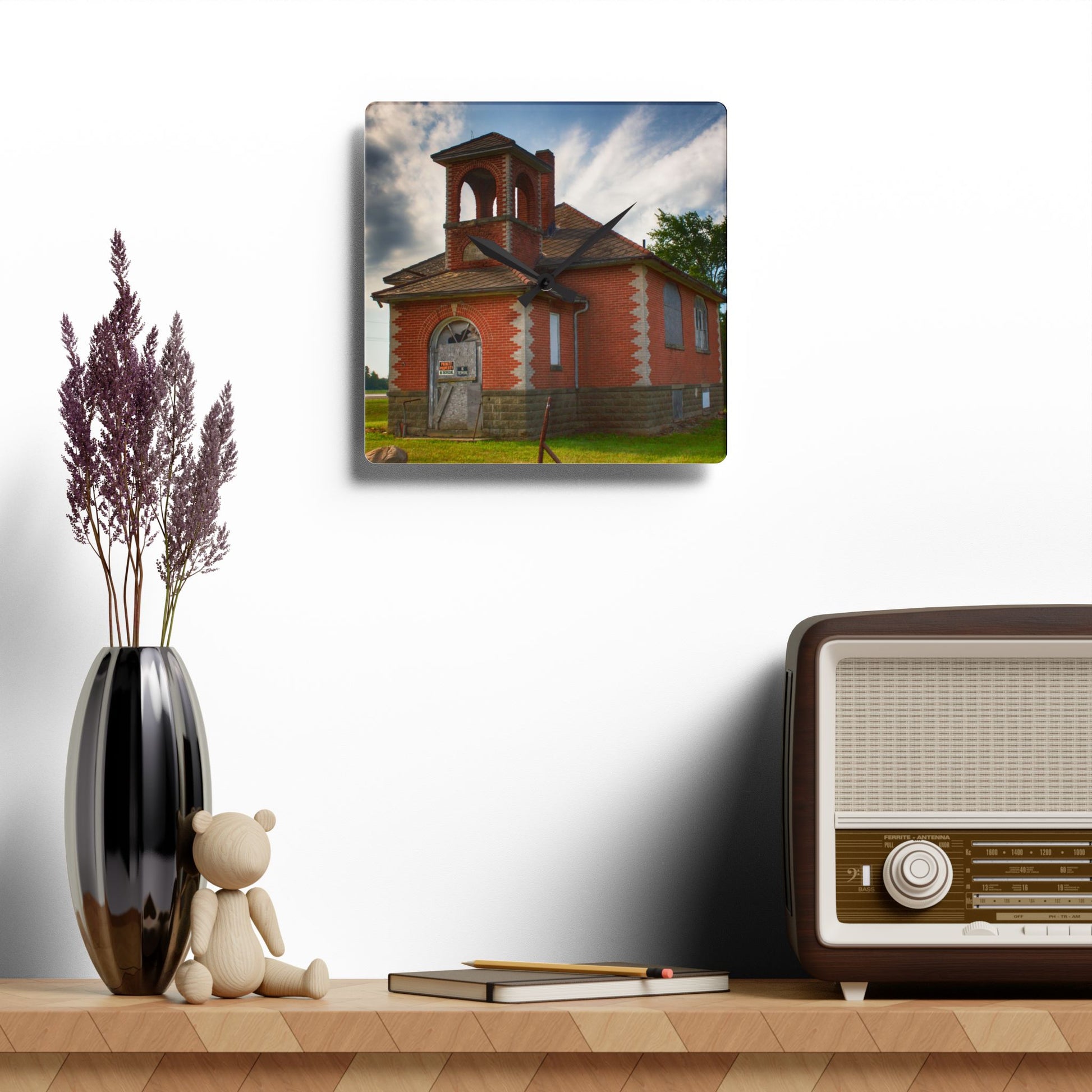 U R There Photography North Grove Road Schoolhouse I Rustic Farmhouse Acrylic Analog Wall Clock