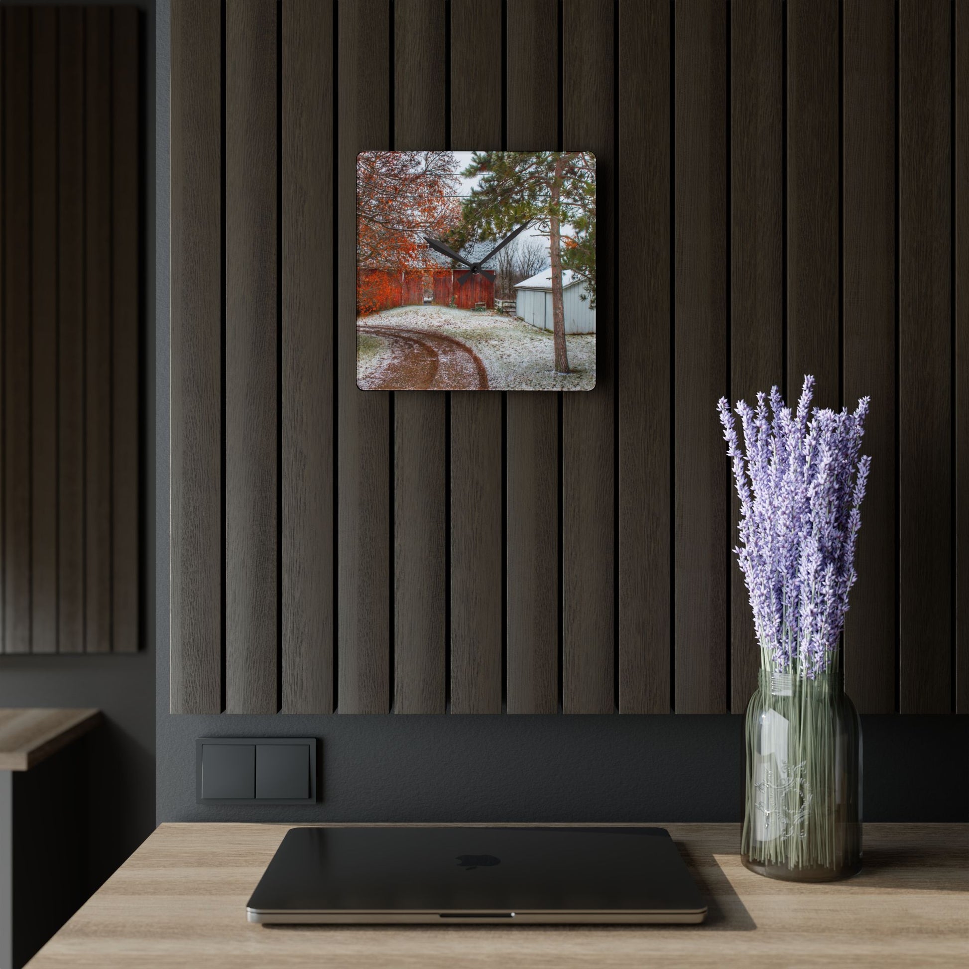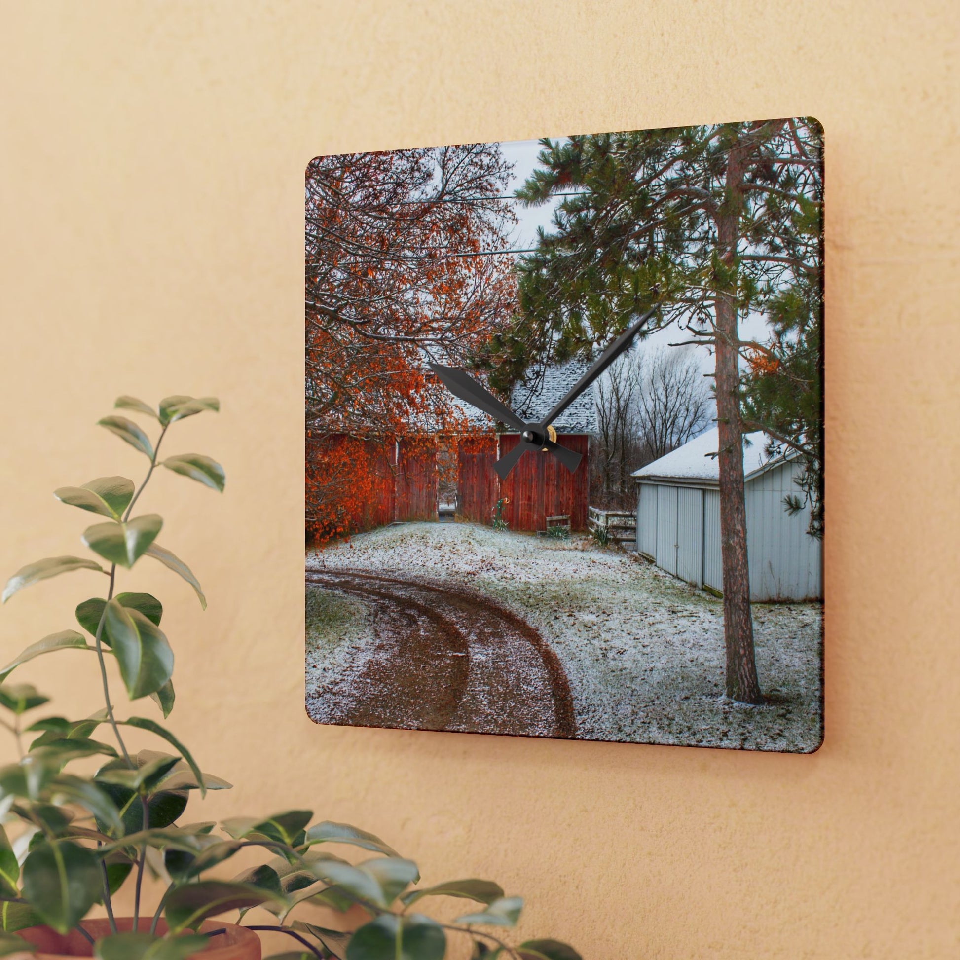 U R There Photography North Lake Pleasant Road Hidden Red Rustic Farmhouse Acrylic Analog Wall Clock