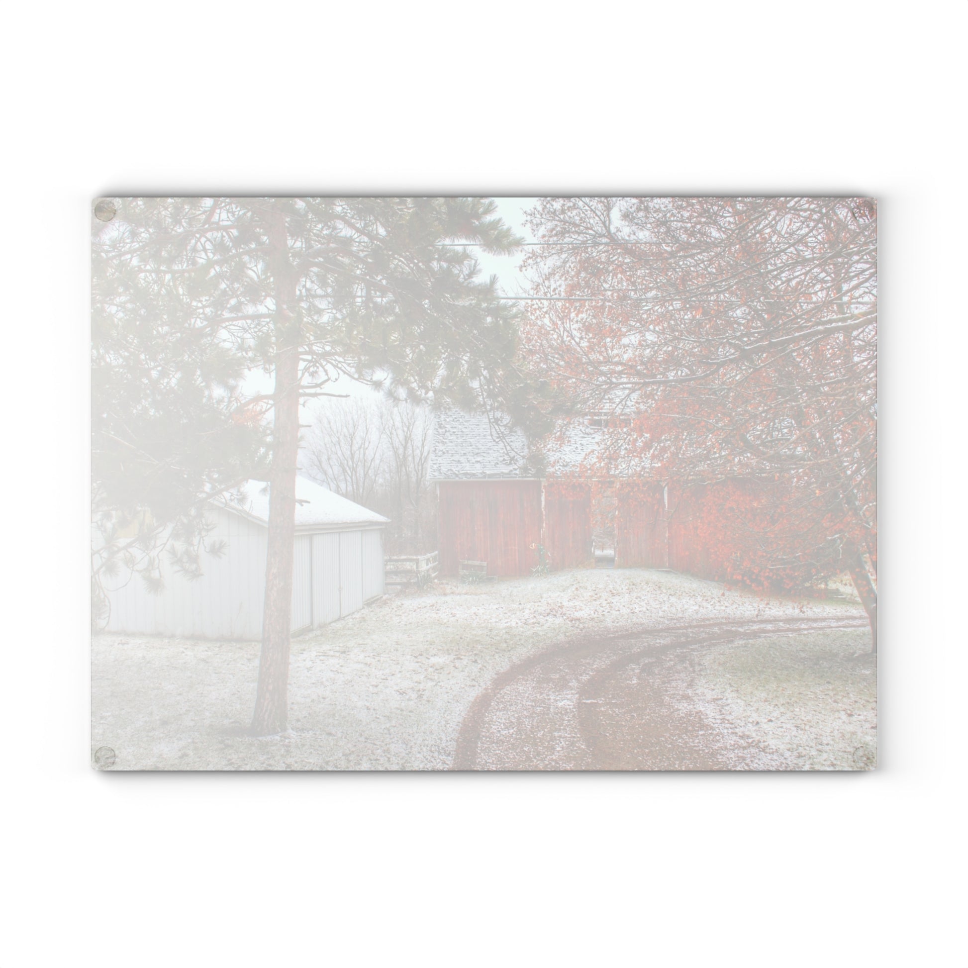 U R There Photography North Lake Pleasant Road Hidden Red Rustic Farmhouse Tempered-Glass Cutting Board