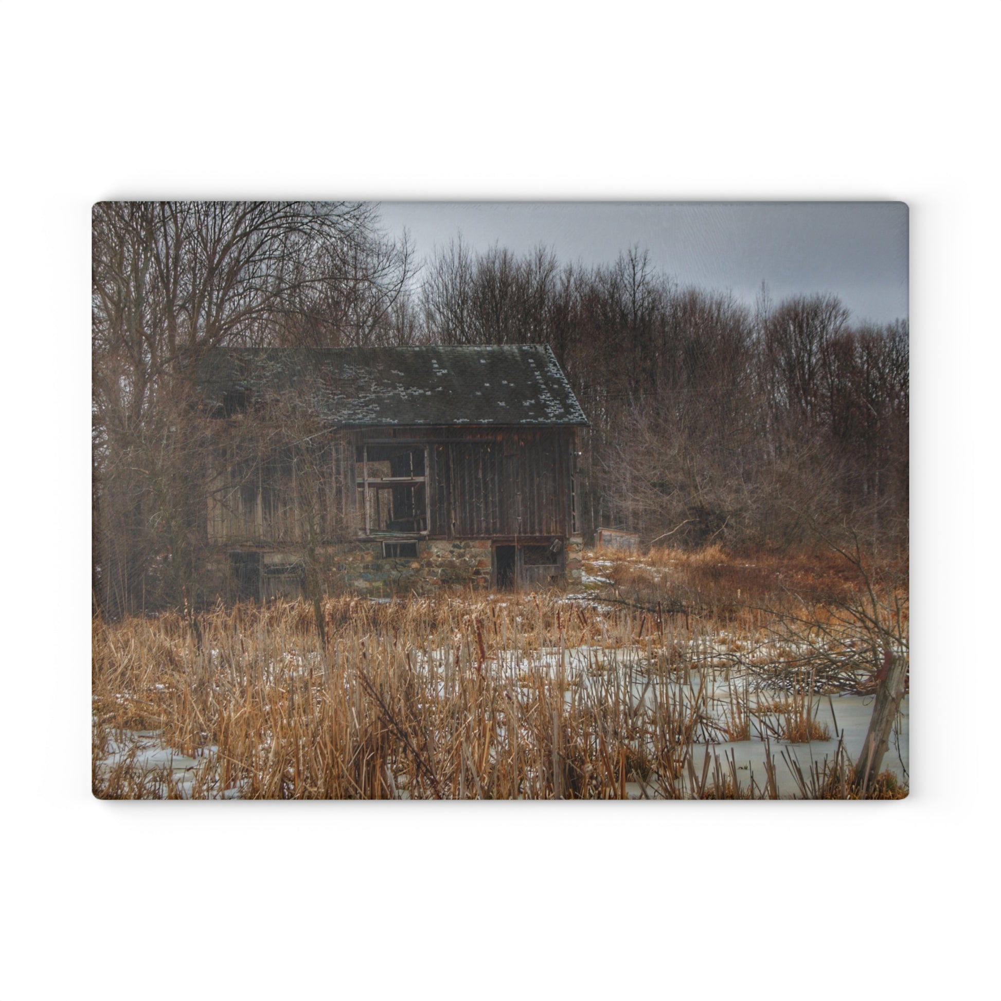 U R There Photography Norway Lake Road Hidden Grey I Rustic Farmhouse Tempered-Glass Cutting Board