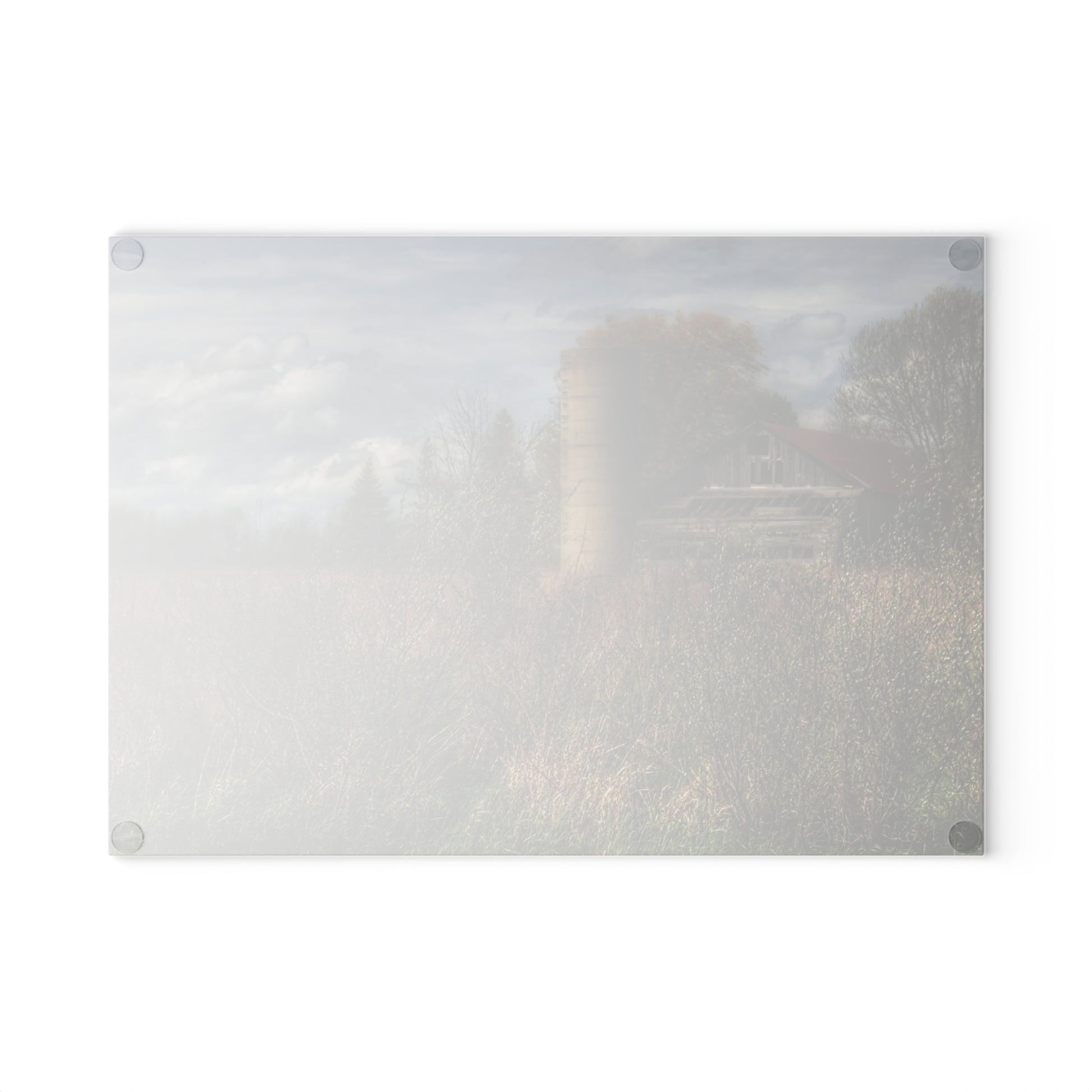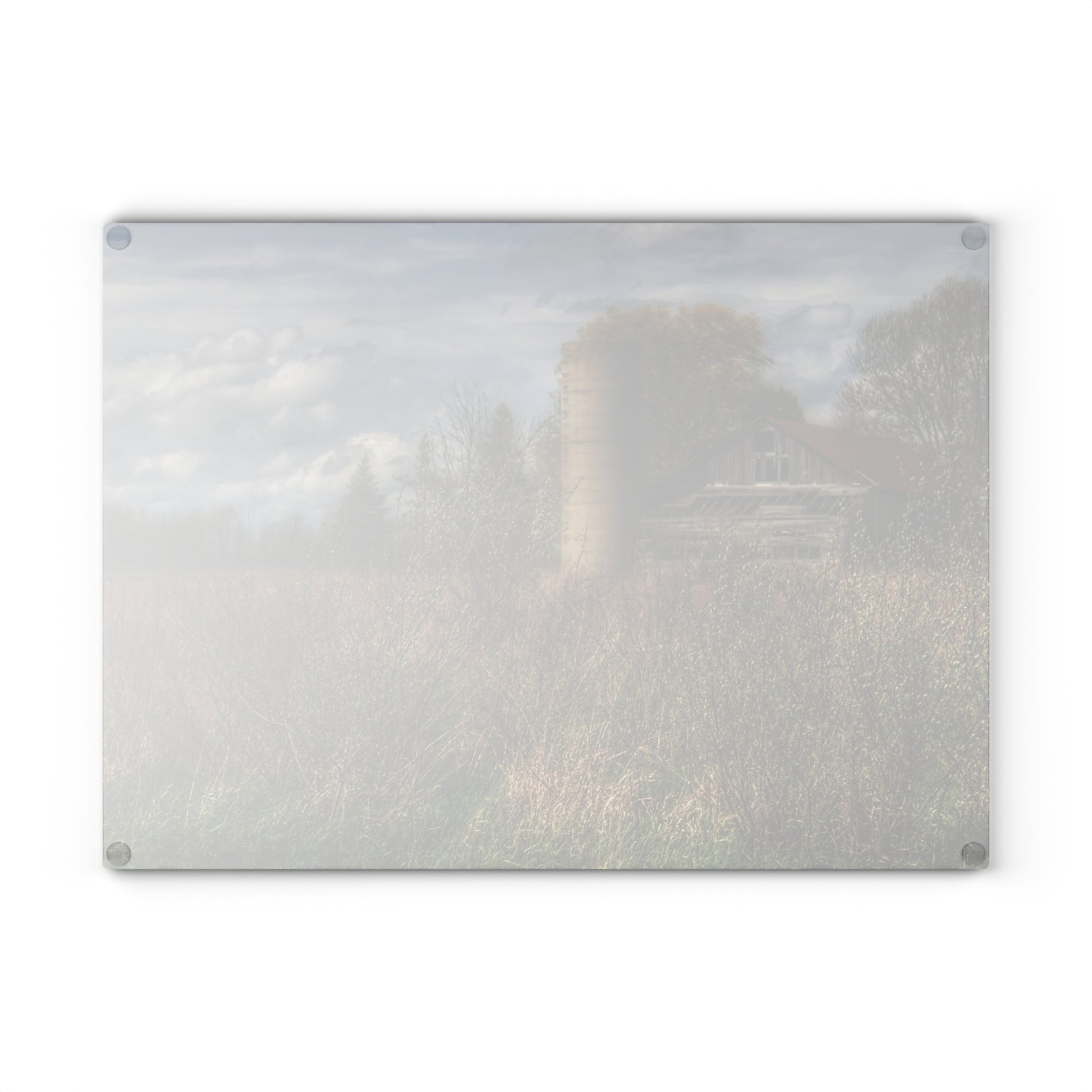 U R There Photography Old Wooden Barn and Silo I Rustic Farmhouse Tempered-Glass Cutting Board