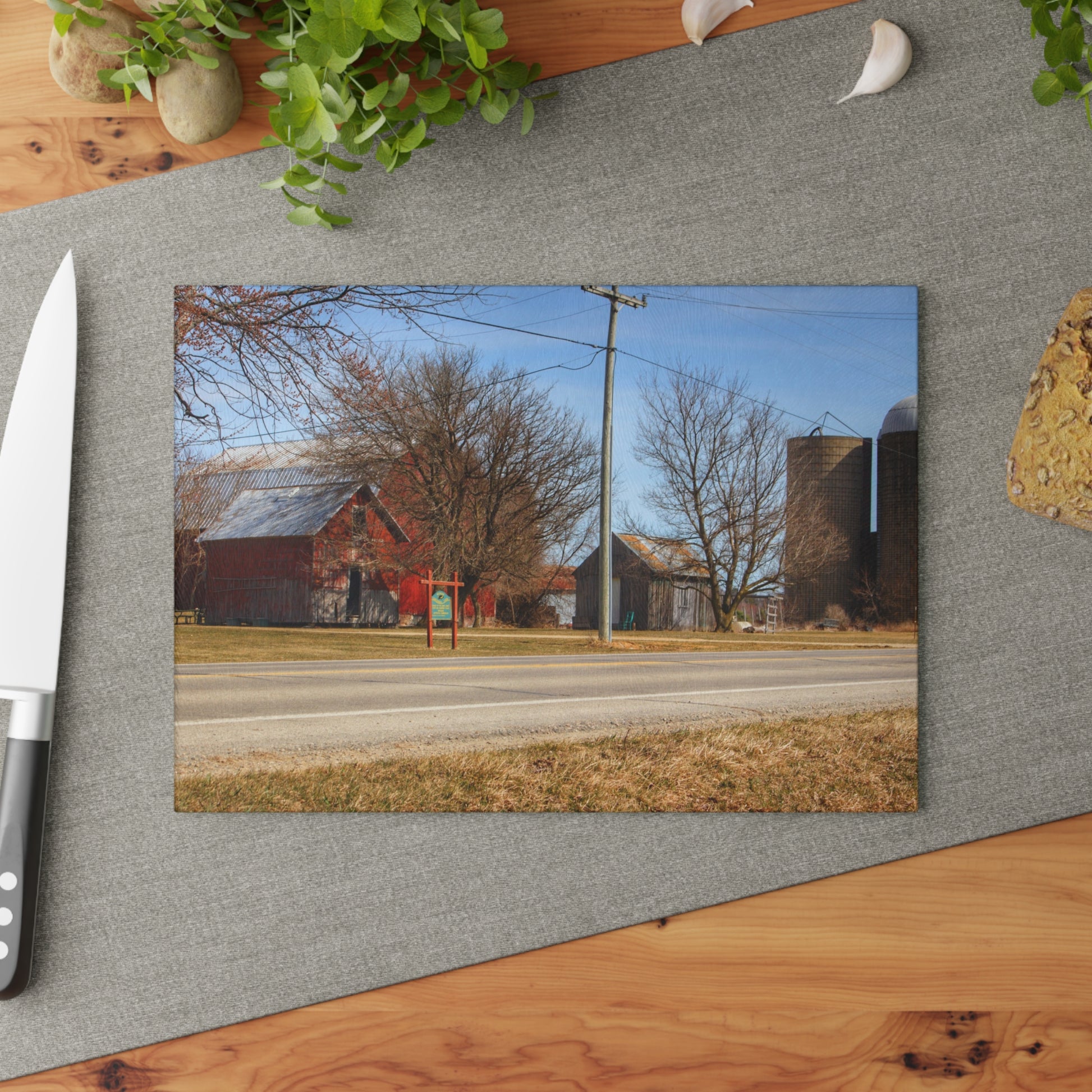 U R There Photography Otter Lake Centennial Reds Rustic Farmhouse Tempered-Glass Cutting Board