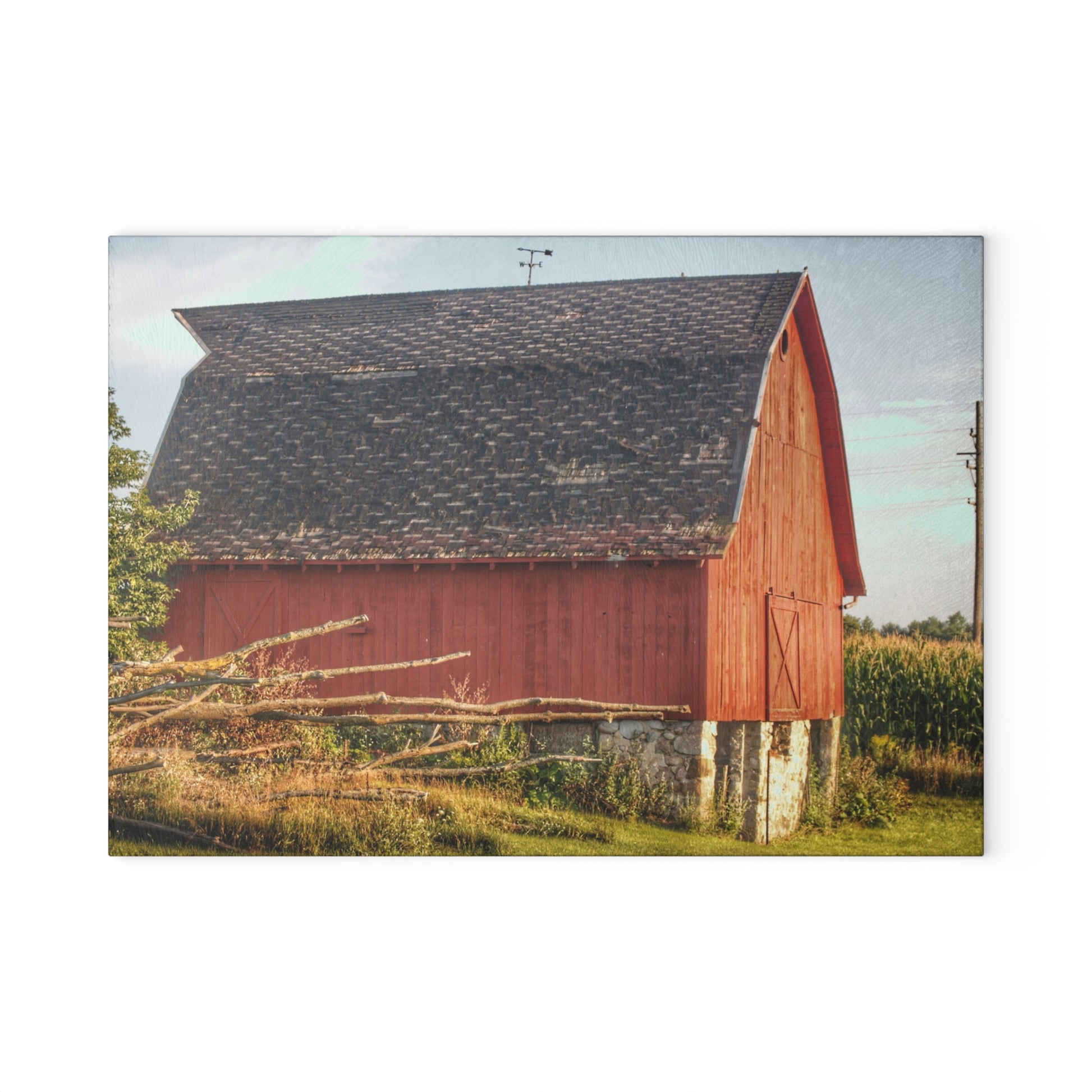 U R There Photography Otter Lake Road Red II Rustic Farmhouse Tempered-Glass Cutting Board