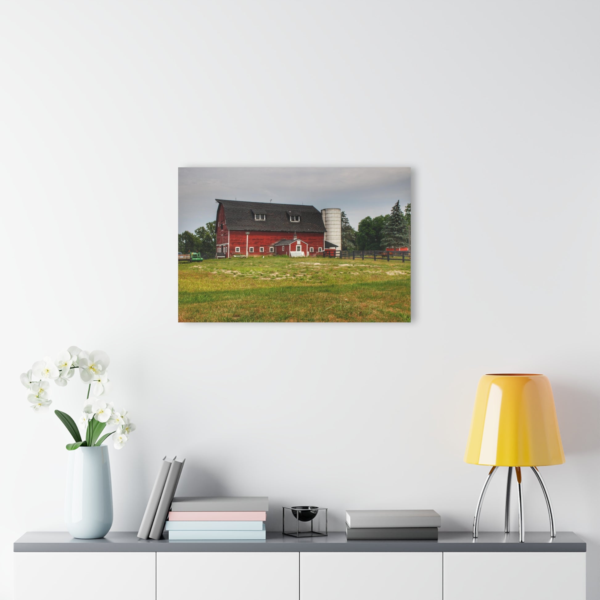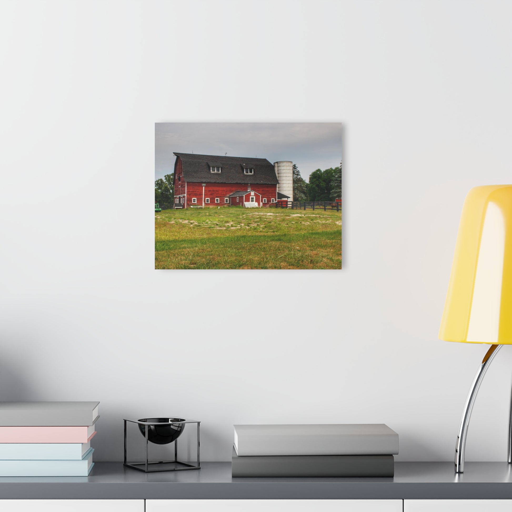 Add rustic charm to any room with the Barn Boutique Modern Farmhouse Acrylic Wall Print. The Oxford Old Red and Silo print is made with high-quality acrylic for a sleek and modern look. Perfect for adding a touch of country to your home decor.