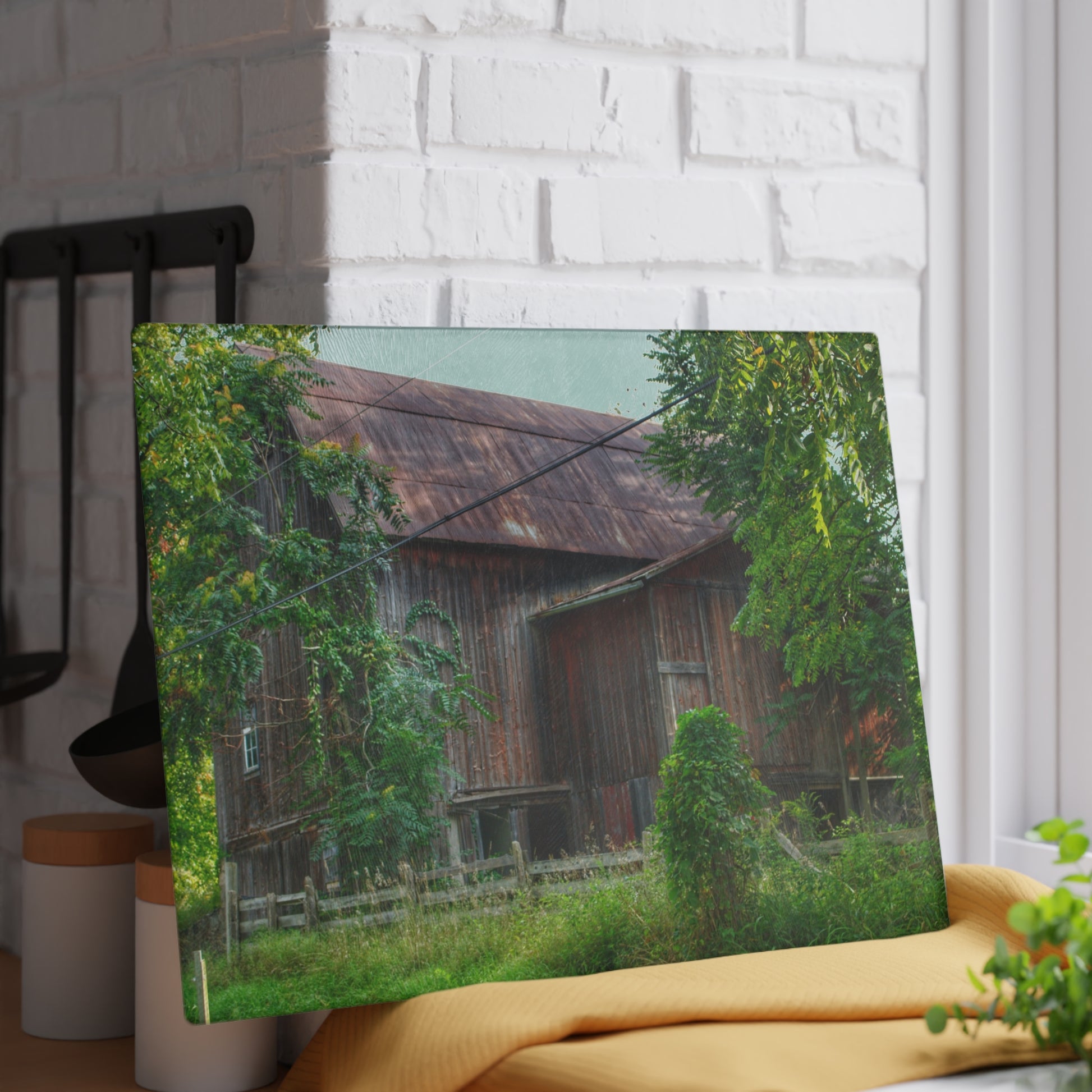 U R There Photography Oxford Rusted Red I Rustic Farmhouse Tempered-Glass Cutting Board