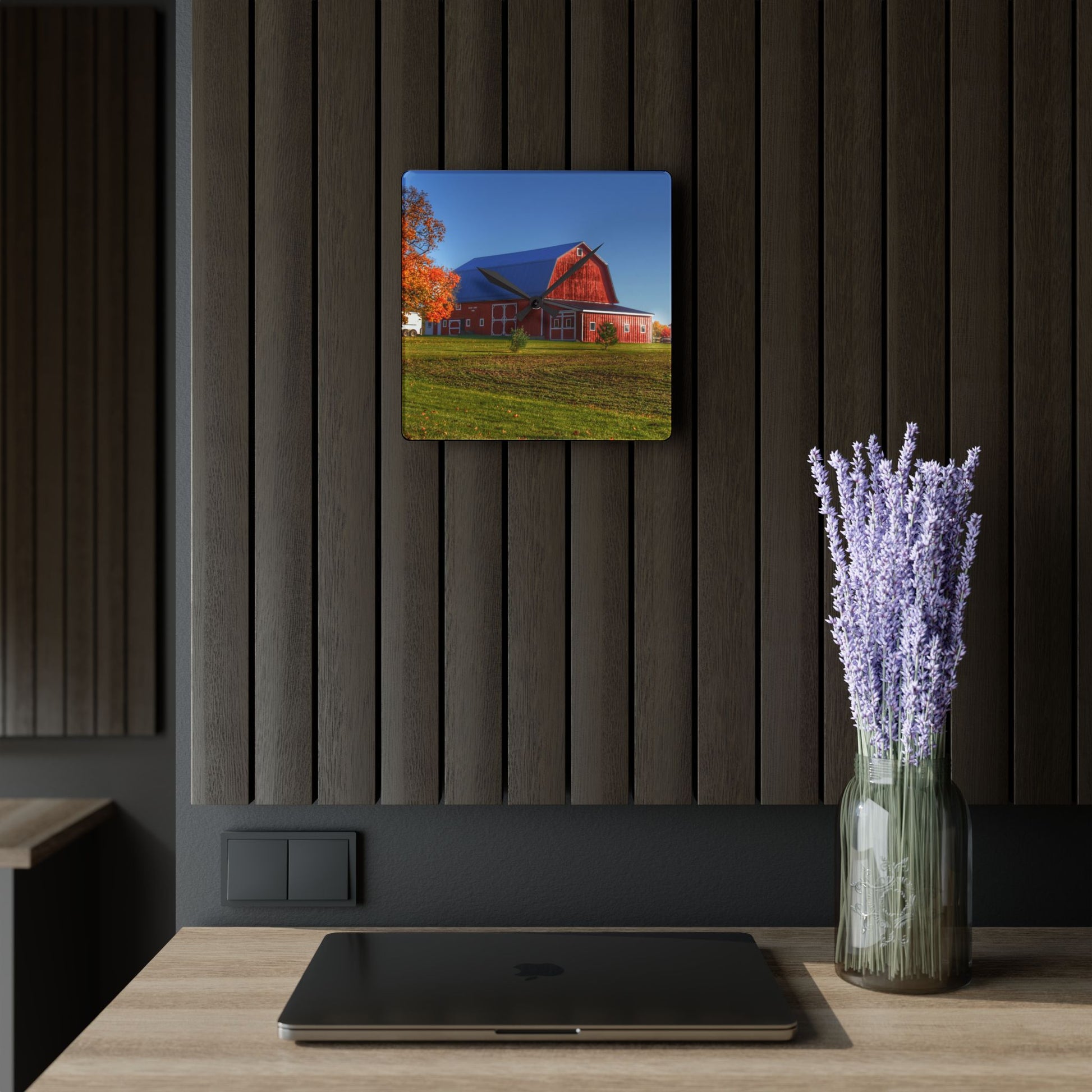 U R There Photography Shoemaker Road Red Rustic Farmhouse Acrylic Analog Wall Clock