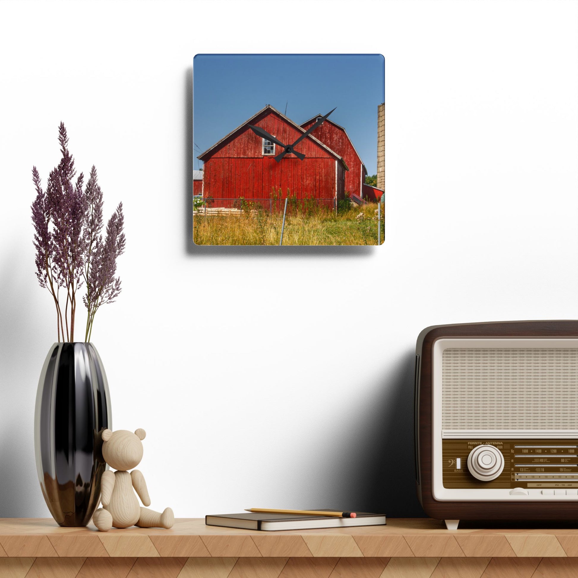 U R There Photography Shoemaker Road Reds Rustic Farmhouse Acrylic Analog Wall Clock
