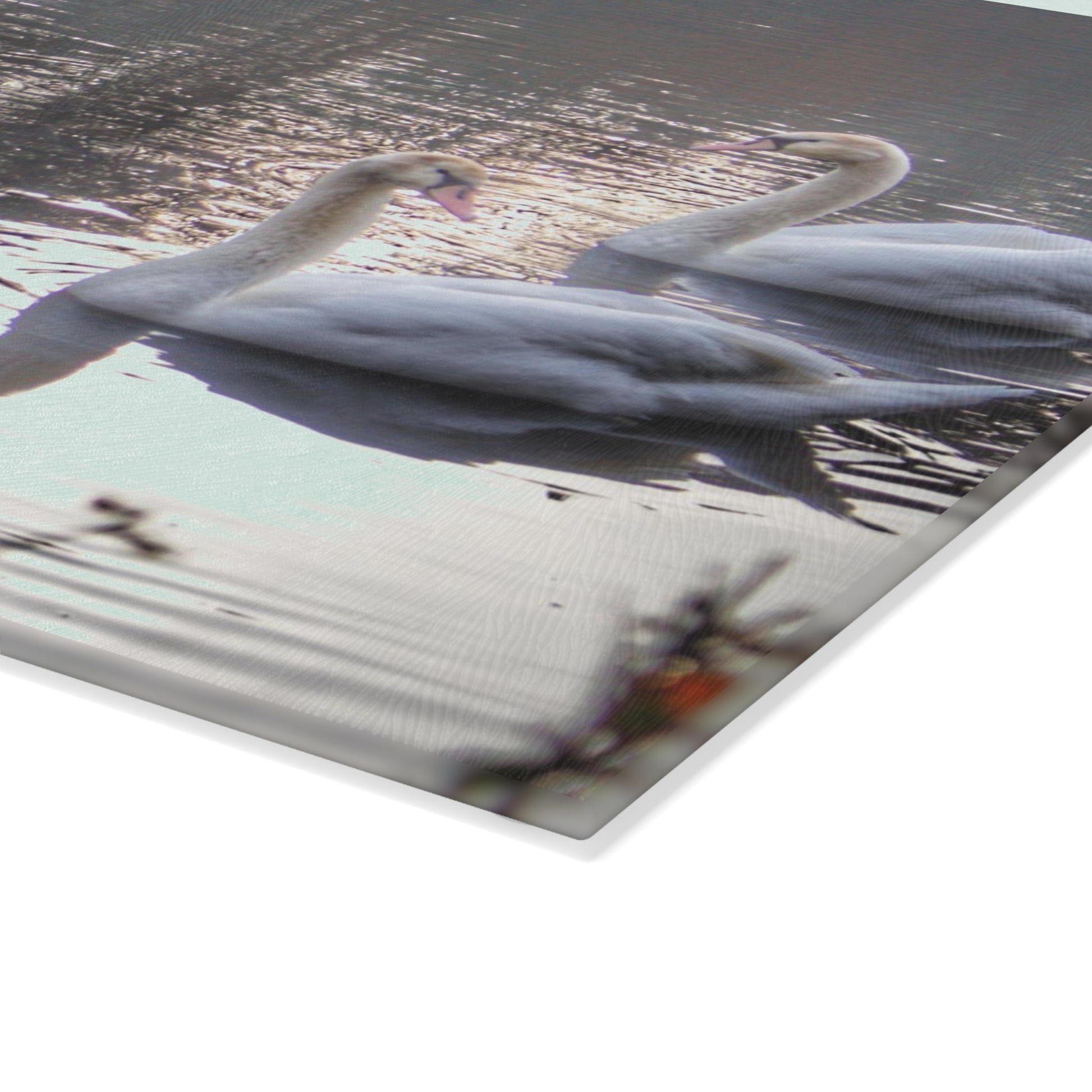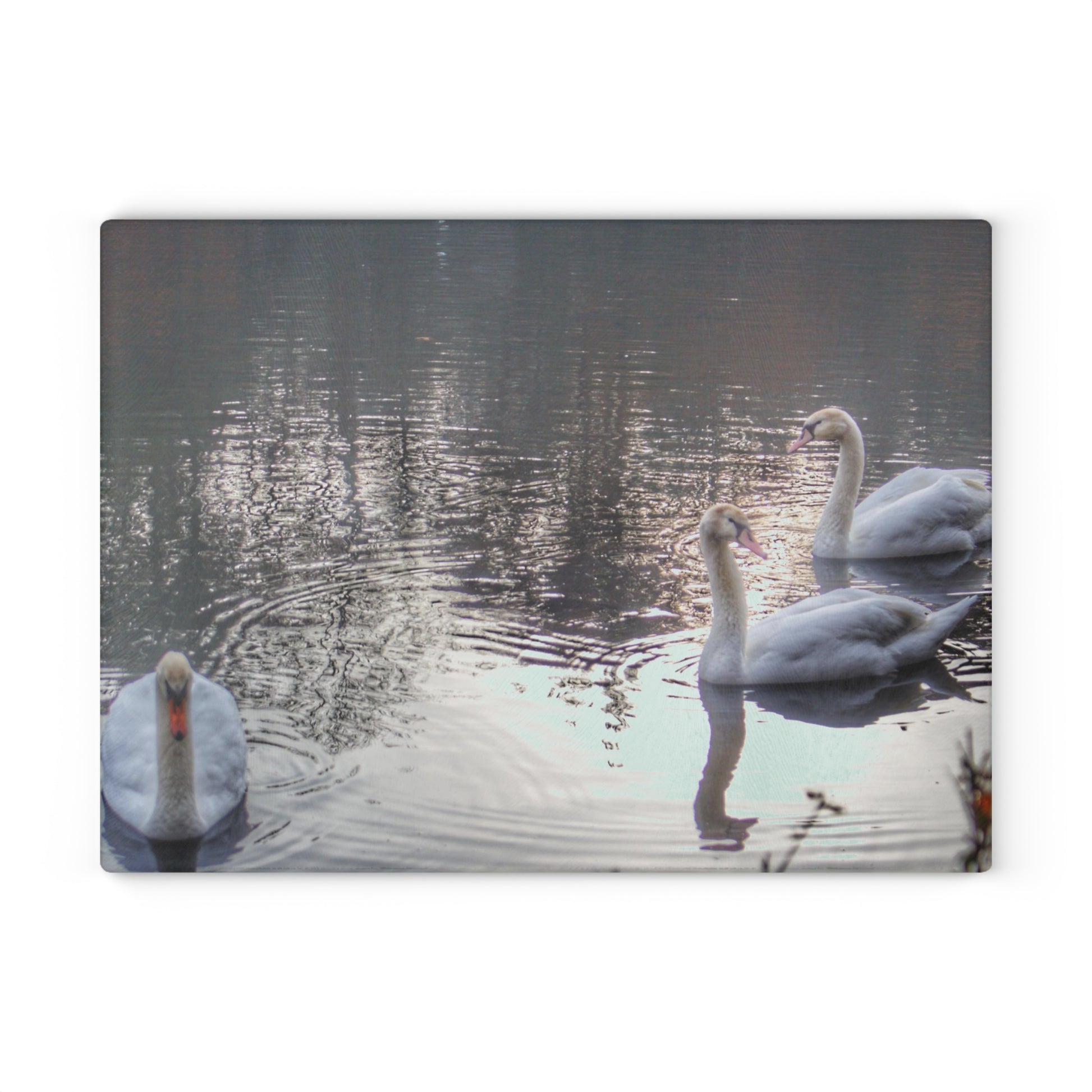 U R There Photography Swans of Duck Lake II Rustic Farmhouse Tempered-Glass Cutting Board