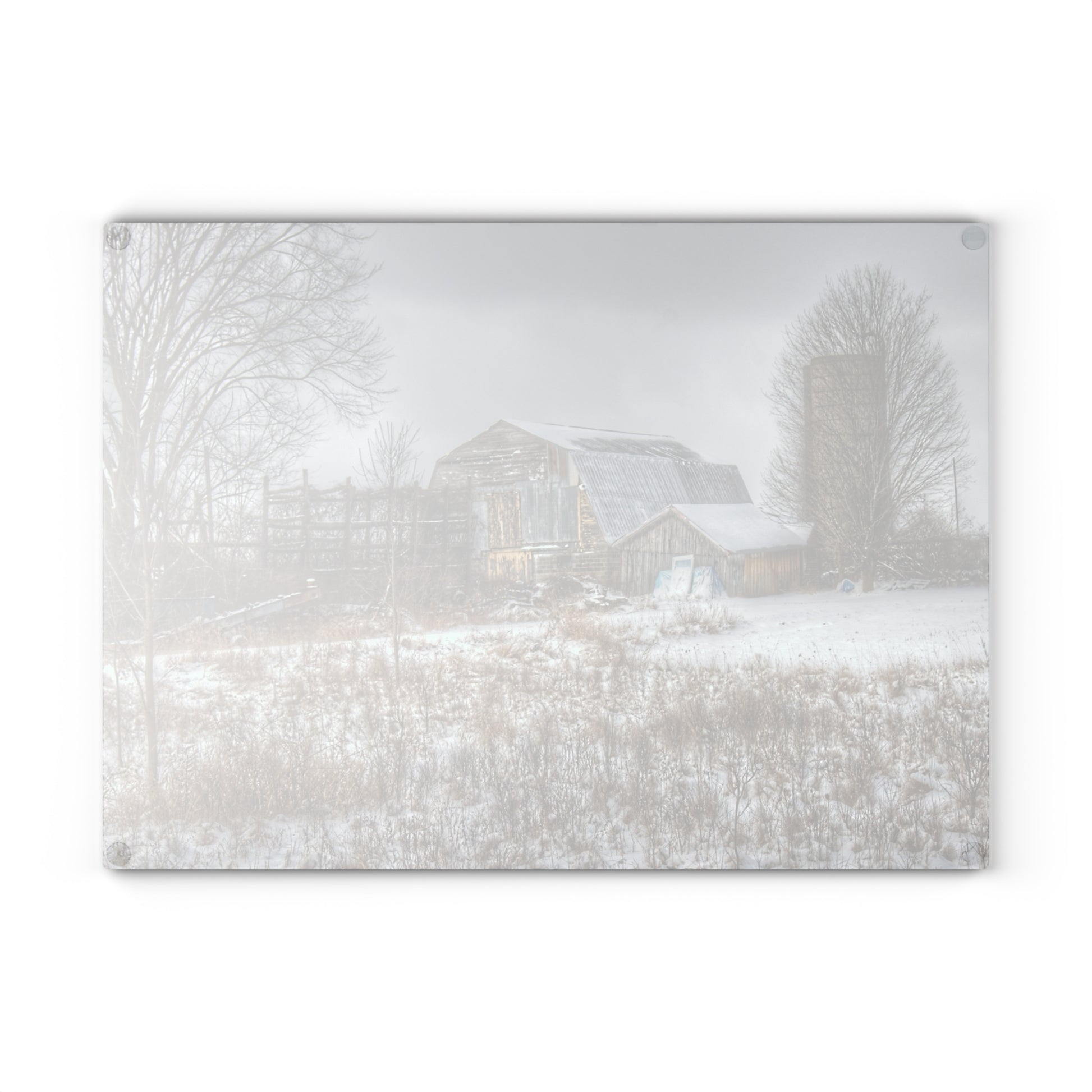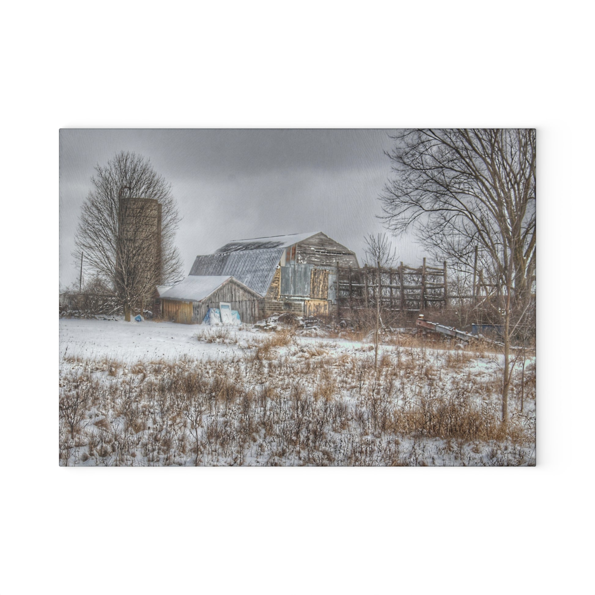U R There Photography Vermilya Grey and Silo Rustic Farmhouse Tempered-Glass Cutting Board