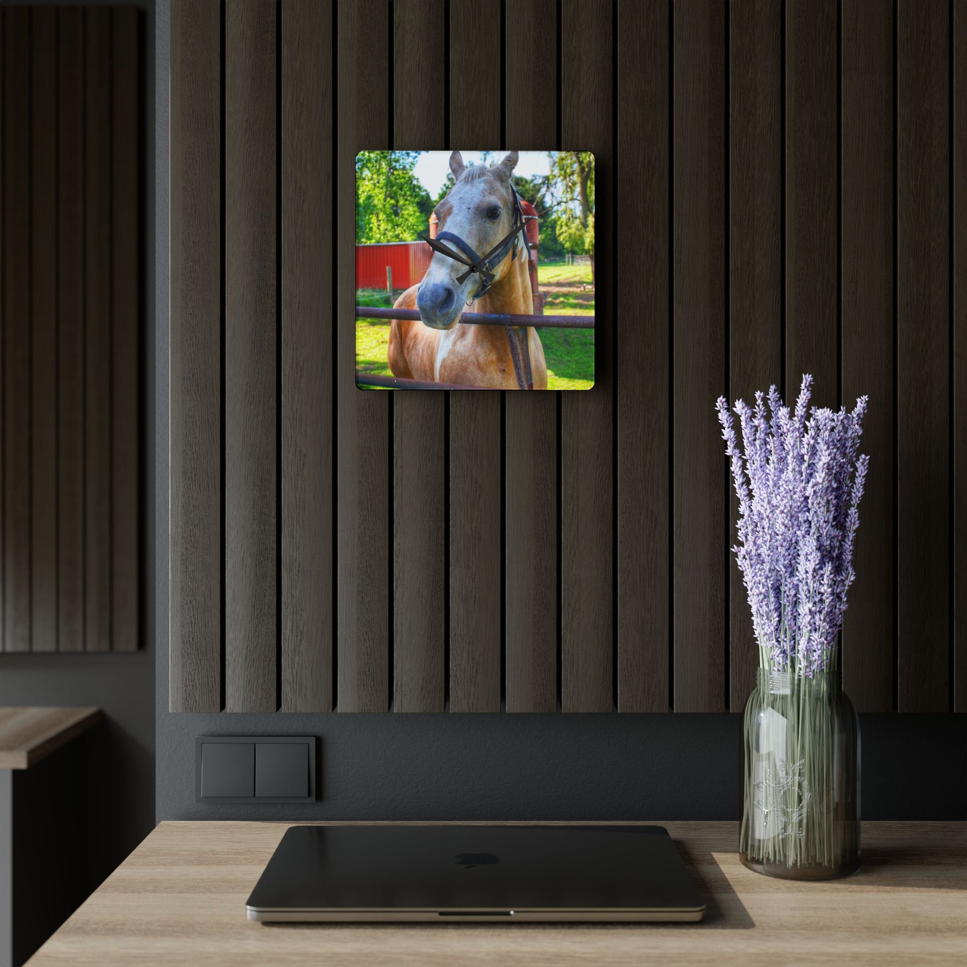 U R There Photography White Cream Mare of Hollenbeck Rustic Farmhouse Acrylic Analog Wall Clock
