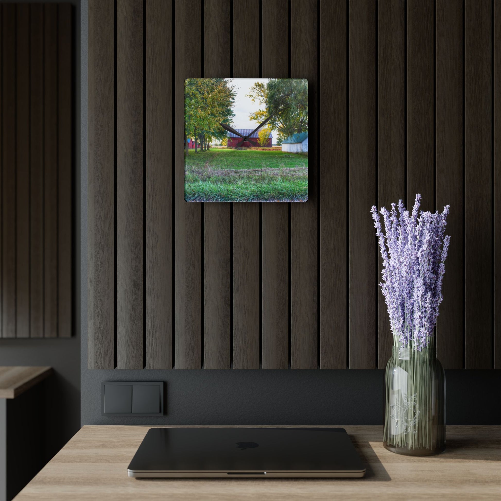 U R There Photography Wilcox Road Reds Rustic Farmhouse Acrylic Analog Wall Clock